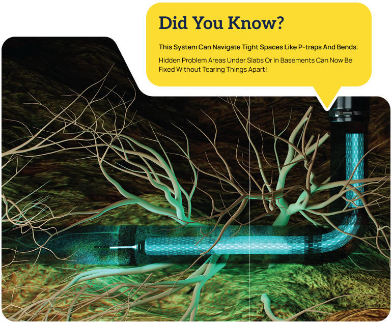 system navigates curves, bends, and p-traps easily to resore every part of the pipe